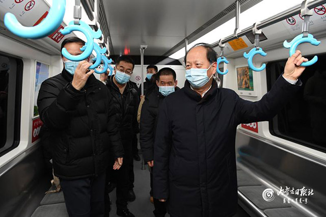 1月1日,自治區(qū)黨委書記、人大常委會主任石泰峰乘坐呼和浩特地鐵,了解新冠肺炎疫情防控和市民出行情況。內(nèi)蒙古日報社融媒體記者 袁永紅 攝