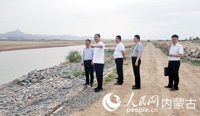 自治區政協常委、副秘書長(兼),九三學社內蒙古區委副主委(兼秘書長),阿拉善盟副盟長劉德(左一)在黃河岸邊巡河,調研生態治理。受訪者供圖