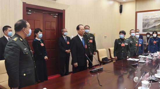 1月20日,自治區黨委書記、人大常委會主任石泰峰,自治區黨委副書記、自治區主席王莉霞來到自治區十三屆人大六次會議解放軍和武警部隊代表團,親切看望出席會議的代表。自治區領導于立新、林少春一同看望。內蒙古日報社融媒體記者 袁永紅 攝