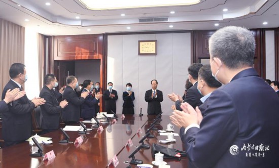 1月20日,自治區黨委書記、人大常委會主任石泰峰,自治區黨委副書記、自治區主席王莉霞來到自治區十三屆人大六次會議包頭市代表團,親切看望出席會議的代表。自治區領導于立新、林少春一同看望。內蒙古日報社融媒體記者 袁永紅 攝