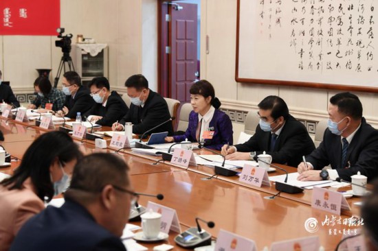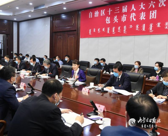 1月21日下午,自治區黨委副書記、自治區主席王莉霞在她所在的包頭市代表團與代表們共同審議政府工作報告。內蒙古日報社融媒體記者 韓卿立 攝
