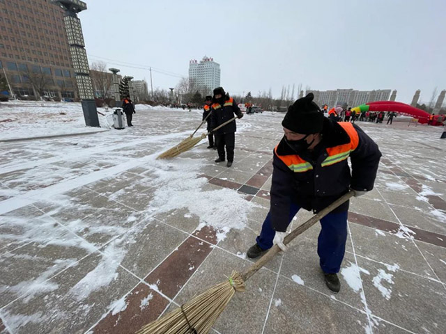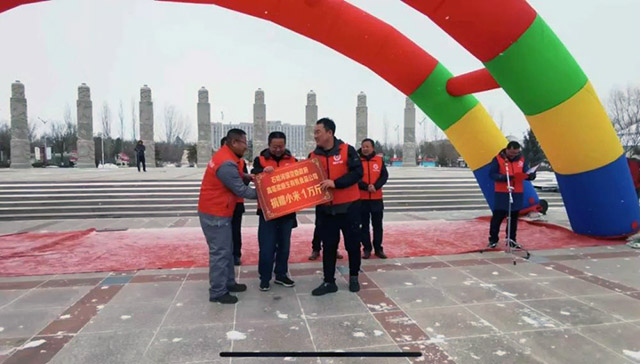 活動現場,愛心企業為環衛工人送去價值共計12萬元的1萬斤小米,將美好祝福送給最可愛的人。一排排著橘色工裝的環衛工人整齊列隊,提著沉甸甸的小米合不攏嘴。