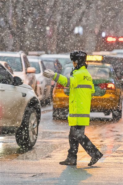 交警堅守崗位,保障道路暢通。記者 懷特烏勒斯 攝
