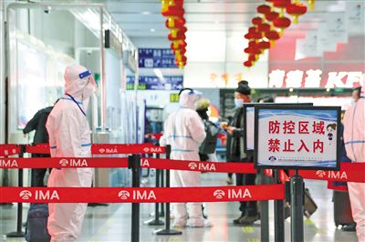 呼和浩特白塔國際機場,春運期間加強疫情防控措施。記者 王曉博 攝