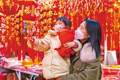 市民選購喜慶的新春裝飾品。記者 王磊 攝