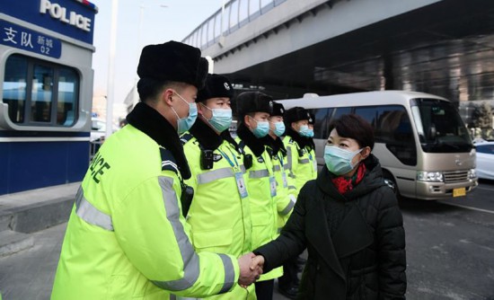 呼和浩特街頭張燈結彩,節日的氣氛十分濃郁。王莉霞來到青城驛站和交警值班崗亭,向堅守崗位的工作人員送上了節日慰問品,并向他們致以新春的祝福,祝他們身體健康、闔家歡樂。