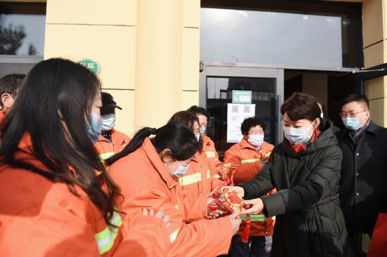 1月30日,自治區黨委副書記、自治區主席王莉霞在呼和浩特市青城驛站慰問一線環衛工人,為他們送上福袋、米面油等慰問品。自治區黨委常委、呼和浩特市委書記包鋼參加慰問。內蒙古日報社融媒體記者 韓卿立 攝