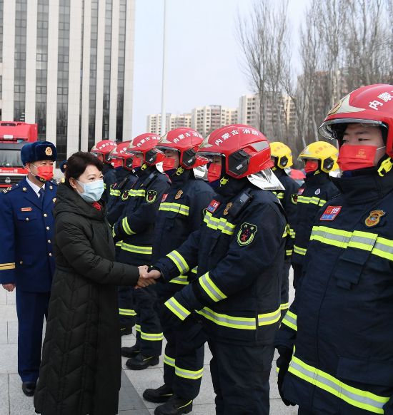 王莉霞首先來到自治區消防救援總隊,詳細了解值班備勤情況,登上移動指揮車,視頻連線烏蘭察布市、根河市消防救援隊,代表自治區黨委和政府向堅守崗位的指戰員致以節日問候。王莉霞說,要深刻認識做好北京冬奧會服務保障工作的重大意義,以為黨分憂、為國盡責的政治擔當,堅守崗位、不怕困難,高標準高質量地完成好相關服務保障工作,為舉辦一個簡約、安全、精彩的冬奧會貢獻內蒙古力量。
