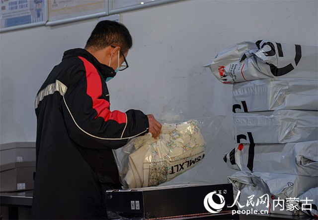 中銀城市廣場一處順豐速運(yùn)站點(diǎn)內(nèi),快遞小哥正在有條不紊的處理訂單、打包裝車。“現(xiàn)在是高峰期,大概每天都要處理150—200件快遞。”郭林俊是順豐速運(yùn)的一名收派員,春節(jié)期間,順豐快遞公司正常營業(yè),中銀城市廣場營業(yè)點(diǎn)留下了三分之一的員工值班,保障快遞物流的正常收發(fā),郭林俊就是其中一員。他家住在烏蘭察布市卓資縣,單位安排他在初一到初三期間值班。
