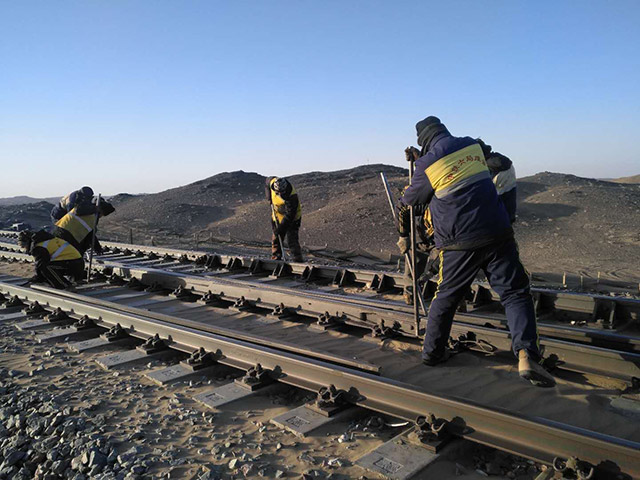 “這可能是我們最后一次值班了,過年了,多讓年輕人陪陪老人、孩子吧,站好最后一班崗既是我們的責任,也是我們的義務。”今年60歲的劉正彪和李玉安是即將退休的老黨員,今年春節,為了確保臨(河)至策(克)768公里鐵路安全運營,春節值班的他們,駐守在祖國北疆戈壁荒漠上的鐵路沿線,將全部精力放到了檢查線路安全隱患上,每天早上不到8點就開始“上道”作業,線路檢查、均勻石砟、整修線路外觀、整修網圍欄缺口、線路緊螺栓涂油、涂刷標語、打磨鋼軌,忙碌了一整天的他們,最快樂的事情就是大家圍坐在一起吃著餃子,看著春節聯歡晚會。“用責任和使命堅守,保證臨策鐵路安全暢通,讓每列列車都安全順利地通過,讓旅客帶著微笑平安回家過年。”這就是中鐵六局呼和公司臨策鐵路維管人一致的心聲。