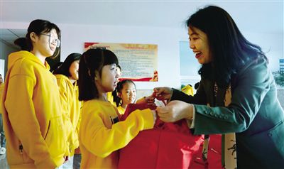 興安盟兒童福利院工作人員送小朋友新年福袋。