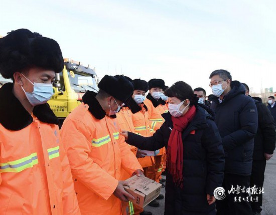 2月3日,自治區(qū)黨委副書記、自治區(qū)主席王莉霞在呼和浩特高路公司碌碡坪養(yǎng)護(hù)所,看望慰問值班值守人員,為他們送上暖寶、自熱米飯等慰問品。自治區(qū)副主席衡曉帆一同慰問。內(nèi)蒙古日?qǐng)?bào)社融媒體記者韓卿立攝