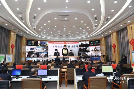2月3日,自治區(qū)黨委副書記、自治區(qū)主席王莉霞在自治區(qū)公安廳指揮中心通過視頻連線了解交通安全檢查情況,向堅(jiān)守在一線的公安干警送上新春祝福。內(nèi)蒙古日?qǐng)?bào)社融媒體記者韓卿立攝