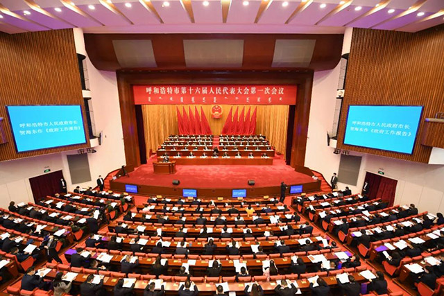 呼和浩特市第十六屆人民代表大會第一次會議在內蒙古人民會堂開幕。王劭凱攝