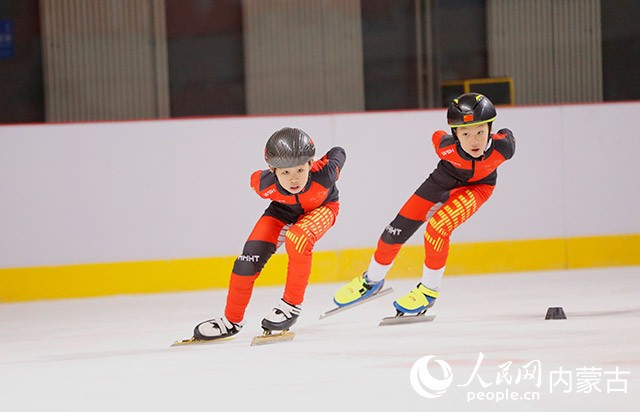 青少年速滑運(yùn)動(dòng)員正在冰場(chǎng)訓(xùn)練。人民網(wǎng) 劉藝琳攝
