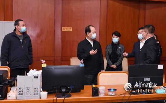 2月17日,自治區黨委書記、人大常委會主任石泰峰,自治區黨委副書記、自治區主席王莉霞來到呼和浩特市疫情防控指揮部調研督導疫情防控工作。內蒙古日報社融媒體記者 袁永紅 攝
