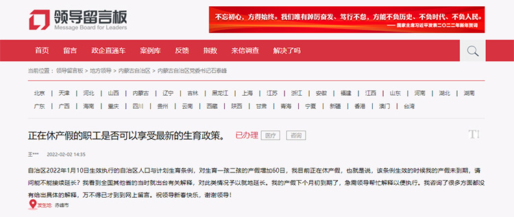 急難愁盼|正在休產假還能享受最新的生育政策嗎?內蒙古衛健委回應
