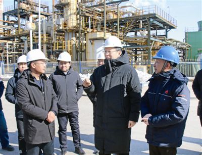 自治區(qū)黨委常委、通遼市委書記孟憲東深入科左中旗寶龍山精細(xì)化工產(chǎn)業(yè)園區(qū)科邁化工項目現(xiàn)場了解項目建設(shè)、科技創(chuàng)新、產(chǎn)品市場等工作。 記者 任杰 攝
