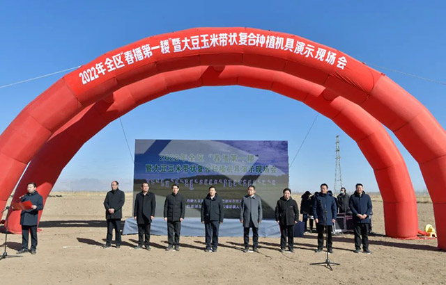 3月2日,2022年全區“春播第一耬”暨大豆玉米帶狀復合種植機具演示現場會在杭錦后旗雙廟鎮增光村舉行。巴彥淖爾市委書記賀偉華出席現場會,自治區農牧廳副廳長恩和特布沁以視頻形式參會,巴彥淖爾市領導呼和、趙峻嶺、樊文、郭占江、閆軍、張志忠參加活動。