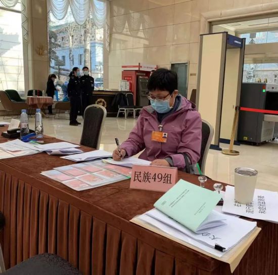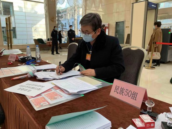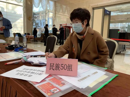 住內(nèi)蒙古全國政協(xié)委員向大會報到。杜明燕、鄂曉梅攝
