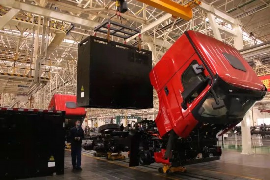 “爆單了!”負責電池裝配的一線技術工人劉強內心為之振奮。看著眼前這條700米長的底盤生產線上,每8分鐘就有一臺新能源重卡下線,他和工友們信心滿滿,干勁十足。