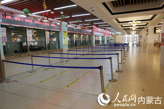 賽罕區北京四中分校食堂設置了取餐分隔欄及一米間隔線。劉士瑒攝