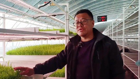 賀東奎是“水培牧草”種植基地的負責人,筆者見到他時,他正在查看牧草的長勢情況。賀東奎指著這些正在成長的牧草告訴筆者,“水培牧草”可以直接作為牛羊的飼料,而且種植“水培牧草”不受季節的限制,每天都能產出新鮮的牧草,牧草當中含有多種營養成分,這就有效緩解了牛羊飼料不足的問題。