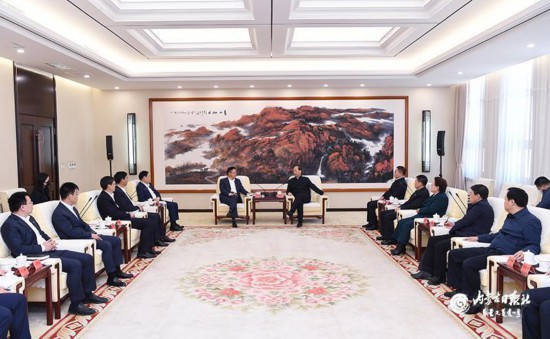 4月7日,自治區黨委書記、人大常委會主任石泰峰在呼和浩特會見TCL集團、協鑫集團和中環半導體企業負責人。內蒙古日報社融媒體記者 袁永紅 攝