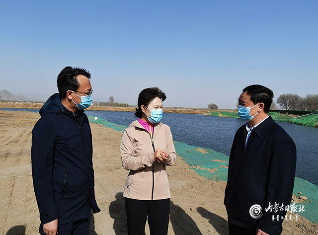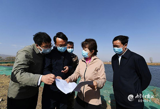 4月7日,自治區黨委副書記、自治區主席王莉霞來到包頭市薩拉齊鎮污水處理廠污水池塘邊,詳細詢問污水來源及處理情況。內蒙古日報社融媒體記者 韓卿立攝