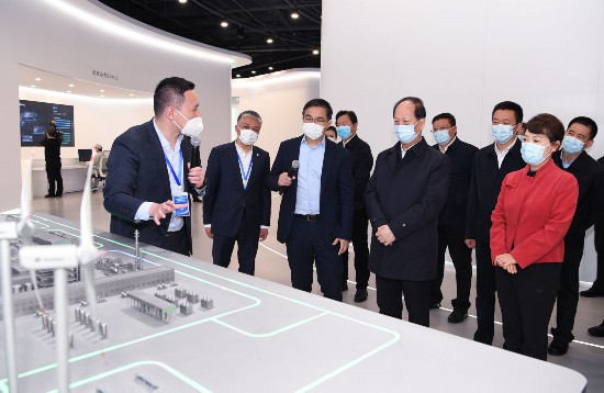 4月8日,自治區黨委書記、人大常委會主任石泰峰,自治區黨委副書記、自治區主席王莉霞,與參加自治區推進高質量發展重大項目建設動員大會代表一起觀摩遠景現代能源裝備制造項目。內蒙古日報社融媒體記者 袁永紅 攝