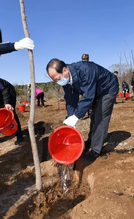 植樹間隙,石泰峰與有關部門負責同志交流,詢問苗木品種、日常管護等情況。他強調,植樹造林既要重視栽種,更要重視管護,加強林木養護管理,確保成活率。要因地制宜選擇適宜當地種植的苗木,注重樹種的多樣性,通過混交林栽植技術,避免因廣種單一樹種引起病蟲害和地力衰退等問題。全區廣大干部群眾要牢固樹立綠水青山就是金山銀山的理念,大力實施國土綠化行動,持續用力保護好生態環境,讓我們共同生活的家園更加綠起來、美起來。