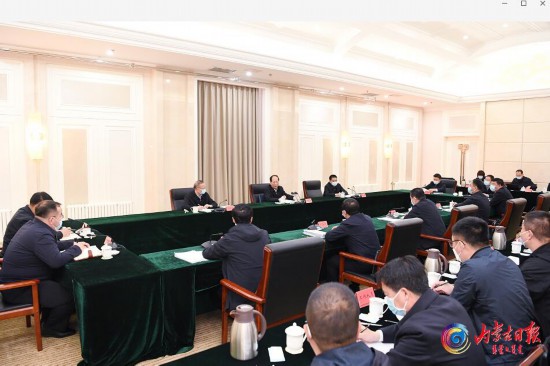 4月19日,自治區黨委書記、人大常委會主任石泰峰在烏蘭察布市四子王旗主持召開座談會,聽取四子王旗鞏固拓展脫貧攻堅成果同鄉村振興有效銜接工作匯報。記者袁永紅攝