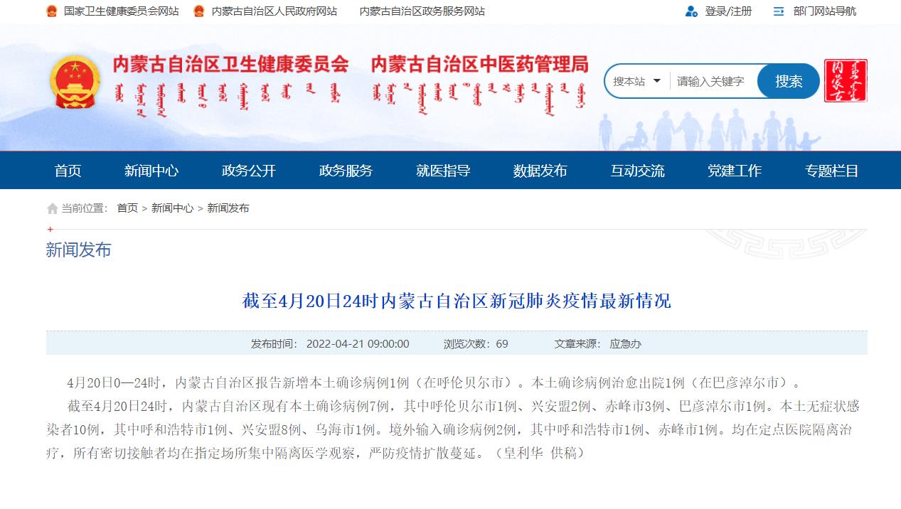 內(nèi)蒙古自治區(qū)衛(wèi)生健康委員會網(wǎng)站截圖