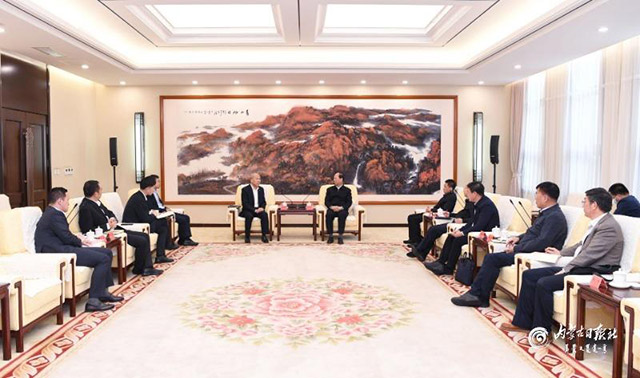 石泰峰會見華友鈷業(yè)集團董事長陳雪華和遠景科技集團CEO張雷