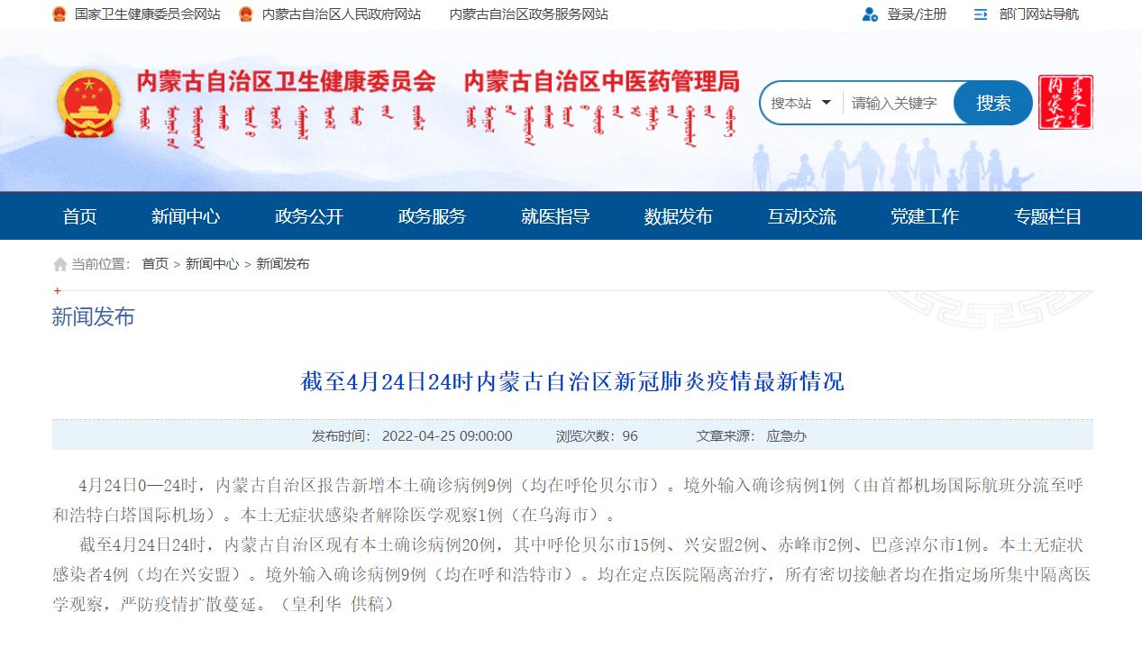 內(nèi)蒙古自治區(qū)衛(wèi)生健康委員會網(wǎng)站截圖
