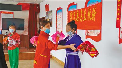 烏蘭牧騎隊員開展文藝志愿輔導。