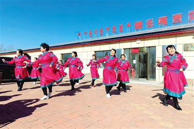 “馬背上的情歌是夢里的篝火,你醉醺醺的酒壺裝著心一顆……”烏蘭浩特市烏蘭哈達鎮腰樂嘎查黨群服務中心活動室,舞蹈隊正在排練,整齊的舞步、歡快的笑容,隊員們和著節奏,翩翩起舞。“我們的舞蹈隊已經成立5年了,現在有20人,農閑的時候大家都愿意出來跳,不僅能鍛煉身體,還能增進鄰里感情呢。”隊長李艷平介紹道。