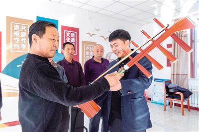 四胡、舞蹈、詩歌、小品……腰樂嘎查注重激發農民內生動力,挖掘培樹一批鄉村文化能人,創作出了一批有鄉土氣息的文藝作品。駐村第一書記白永明牽頭成立了“文化振興工作宣傳隊”,目前已壯大到50余人,在春節、勞動節、國慶節等重要節點開展文化演出活動,從舞蹈《感恩媽媽》到情景劇《婆婆也是媽》,從快板《新村規民約》到詩歌《鄉村振興美家園》,一個個接地氣、受歡迎、有底蘊的原創文藝節目層出不窮,豐富著村民的文化生活。
