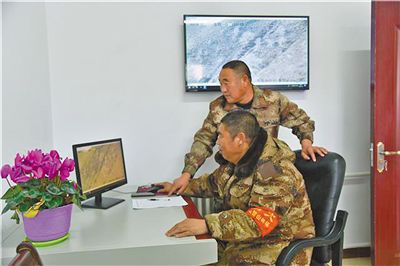 護林員利用防火遠程視頻智能監控系統查看山上的情況。