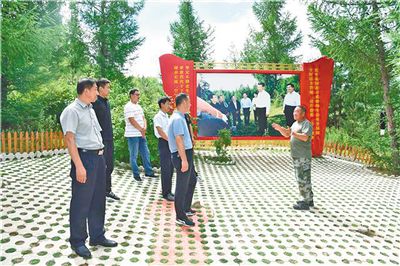 生態好了,來這里旅游的人也多了。一上午的時間,這里已經迎來了好幾撥周邊地區過來的游客。他們沿著小道,走到林場深處的一處平地。一張巨幅照片格外醒目,那是2019年7月15日,習近平總書記在林場與護林員交流的場景,兩側還配有總書記關于生態保護的殷切囑托。如今總書記攀登過的這條護林小道已成為一個紅色教育基地。
