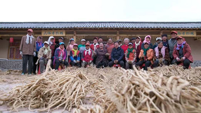 2019年10月,小廟子村種植的桔梗喜獲豐收。趙會杰與種植桔梗的部分村民在民俗博物館前合影。受訪者供圖