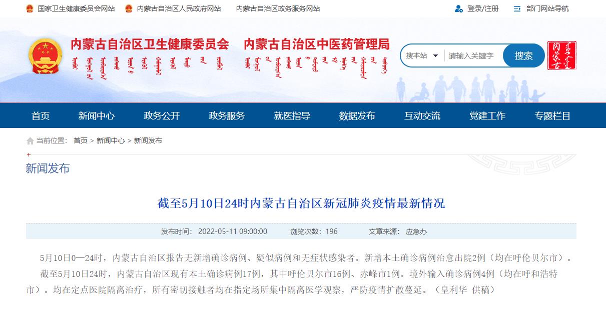 內(nèi)蒙古自治區(qū)衛(wèi)生健康委員會網(wǎng)站截圖