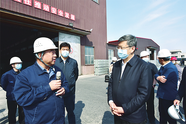 自治區(qū)黨委常委、通遼市委書記孟憲東在扎魯特旗督導(dǎo)檢查內(nèi)蒙古超今新材料有限公司項目建設(shè)情況。記者 宋悅 攝