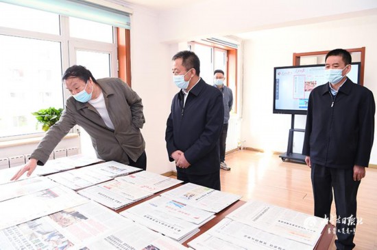 5月20日上午,自治區黨委書記孫紹騁到內蒙古日報社調研,親切看望干部職工。記者袁永紅攝
