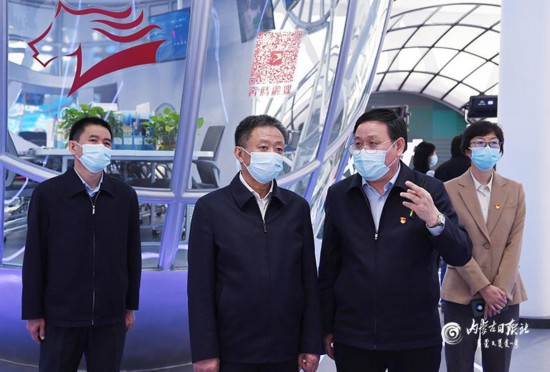 5月20日上午,自治區黨委書記孫紹騁到中央廣播電視總臺內蒙古總站調研,親切看望干部職工。記者袁永紅攝