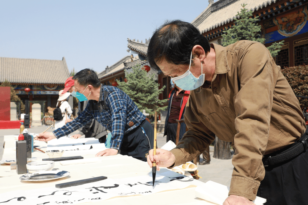 書法志愿者與村民現(xiàn)場互動交流,并為其書寫家訓(xùn)。