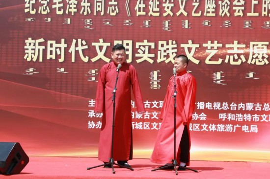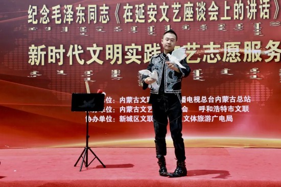 在第9個中國文藝志愿者服務(wù)日到來之際,5月21日上午,由內(nèi)蒙古文聯(lián)、中央廣播電視總臺內(nèi)蒙古總站主辦,內(nèi)蒙古文藝志愿者協(xié)會、呼和浩特市文聯(lián)承辦的紀(jì)念毛澤東同志《在延安文藝座談會上的講話》發(fā)表80周年、喜迎二十大——新時代文明實踐文藝志愿服務(wù)活動走進惱包村活動成功舉辦。內(nèi)蒙古文聯(lián)黨組書記、主席冀曉青,黨組成員、副主席包銀山出席活動。