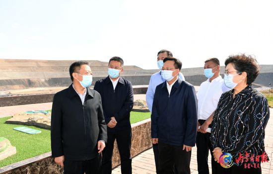 5月24日,自治區黨委書記孫紹騁深入烏海市蘇海圖小鐵帽子采空區災害綜合治理項目現場,認真聽取相關情況匯報。內蒙古日報社融媒體記者袁永紅攝