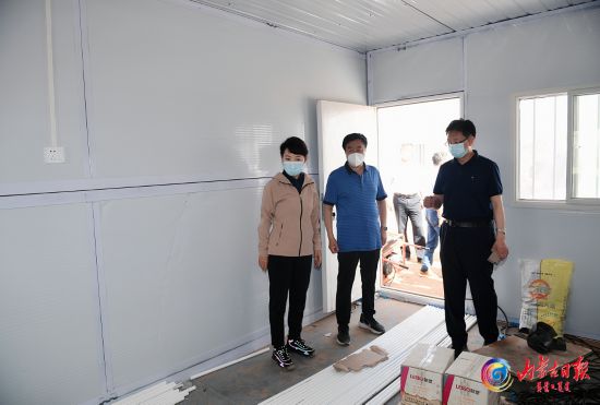 環宇物流園方艙醫院即將竣工交付使用,王莉霞到現場查看建設進度,要求負責人必須按時保質保量交付。她囑咐前來驗收的專家,一定要認真負責,對工程驗收不達標不放過。