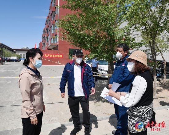 6月8日,王莉霞來到元帝佳苑小區,詳細詢問底數、核酸檢測、應隔人員情況。內蒙古日報社融媒體記者 韓卿立攝
